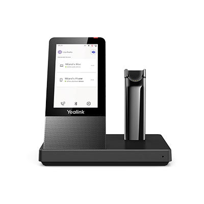 To set the Yealink WH67 aside from competitors, the DECT base station is equipped with a 4” colour touch screen for call control, built-in speaker phone and a two port USB hub. The optional mobile phone wireless charger ensures your mobile phone is always charged.